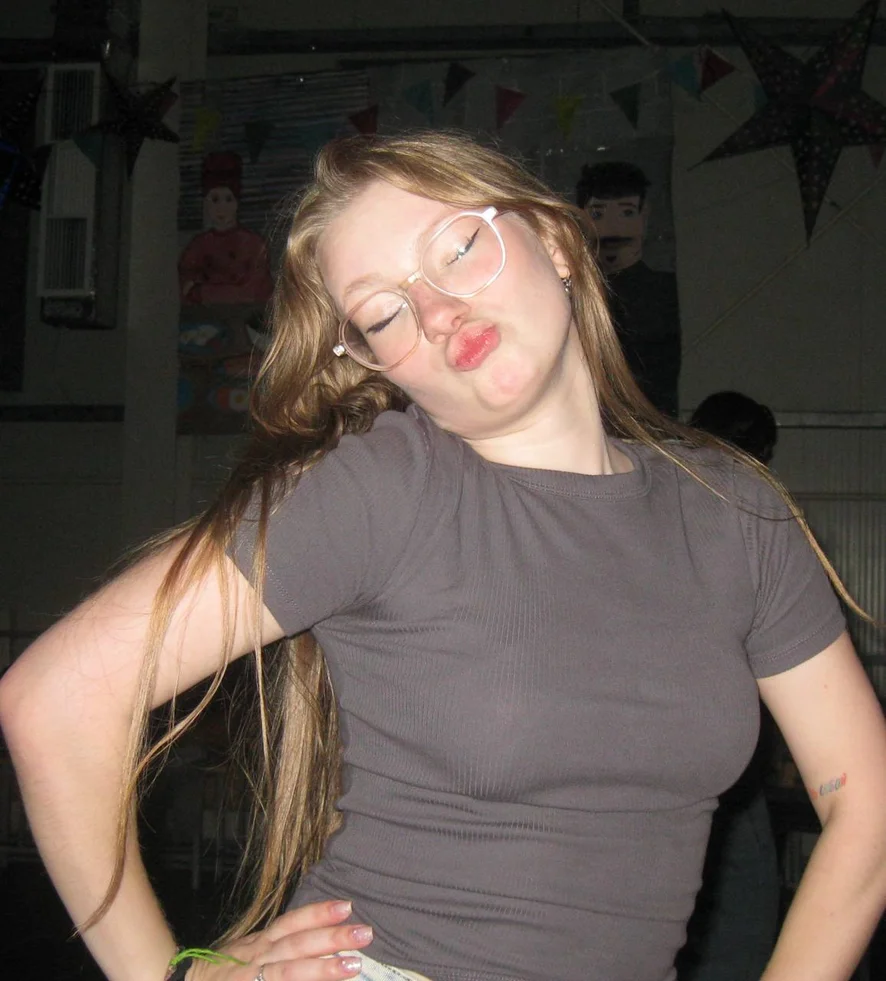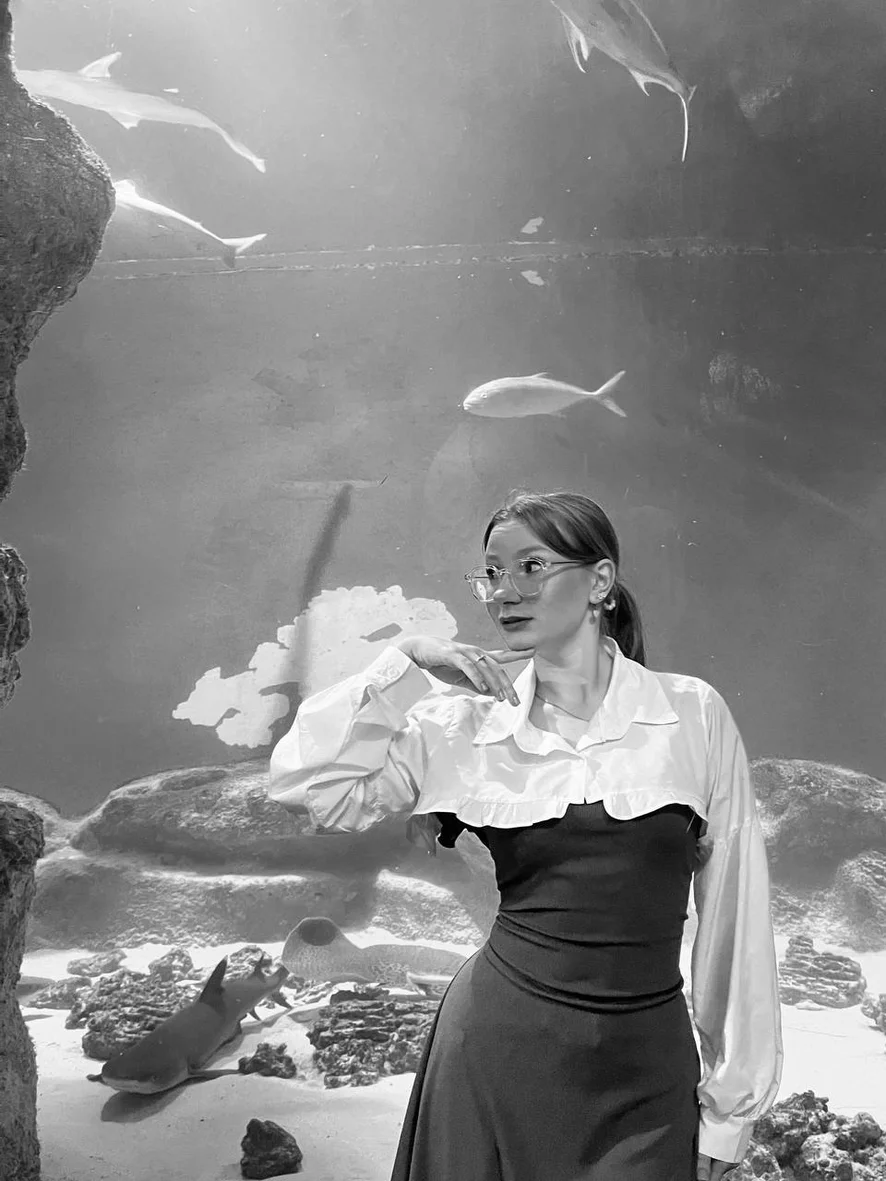 I have long dark hair that has a mind of its own: sometimes it lies perfectly, and sometimes it decides to rebel. In photos, I often look calm, but in real life I have quite a lively personality — I like to joke around, tease my friends and choose strange angles for selfies